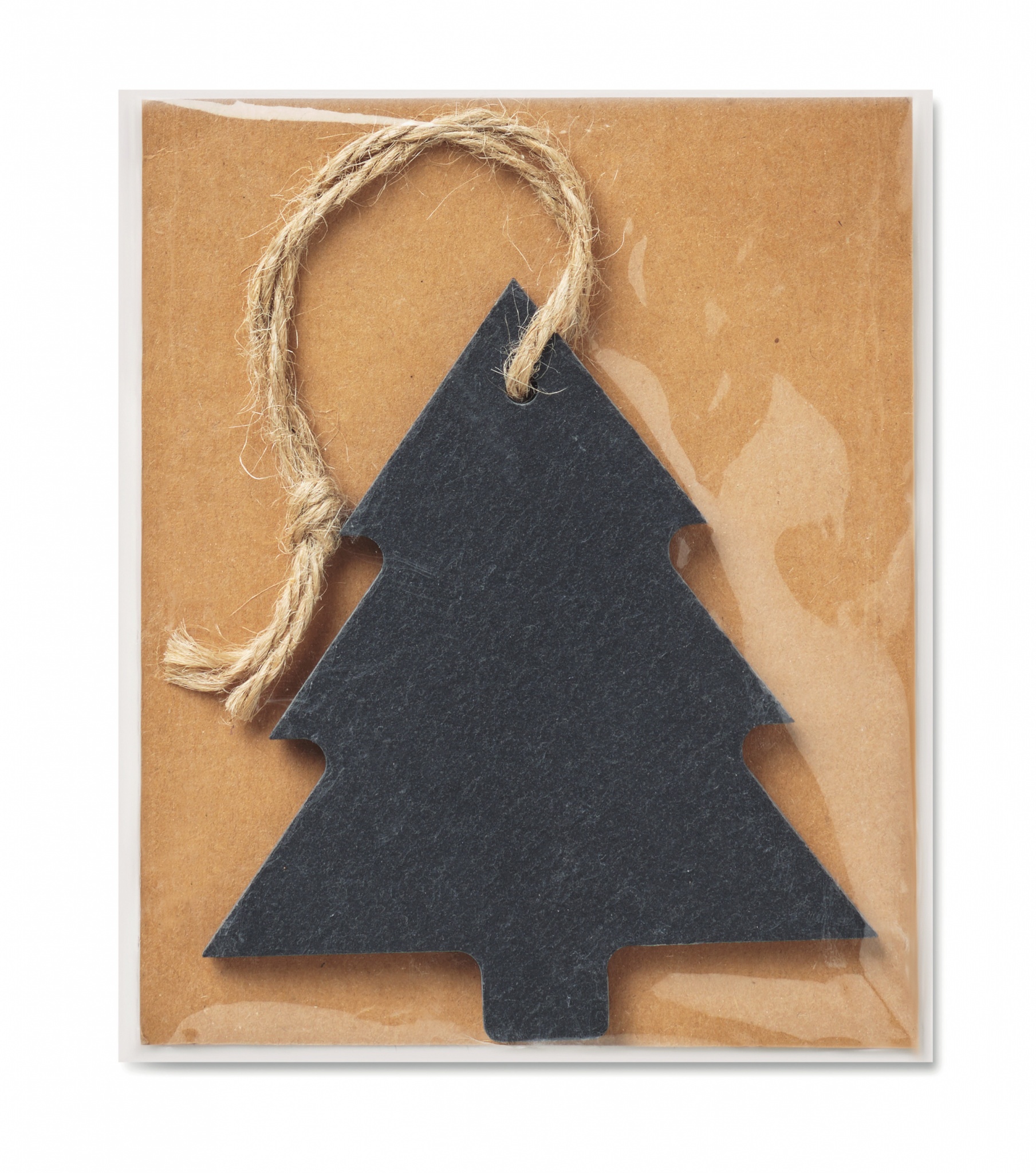 Julgransformad julgransdekoration i skiffer med snöre.