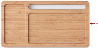 Trådlös laddare med Bambu ovandel med mobilhållare och förvaring för skrivbords tillbehör. En perfekt skrivbordsprodukt som ständigt exponerar ditt budskap. USB outputDC5V/1A (5W). Trådlös output: DC5V/1A. Kompatibel med de flesta Android telefoner, iPhone® 8, X och nyare. USB- C kabel ingår. Eftersom bambu är ett naturligt material kan vissa färgvariationer förekomma.