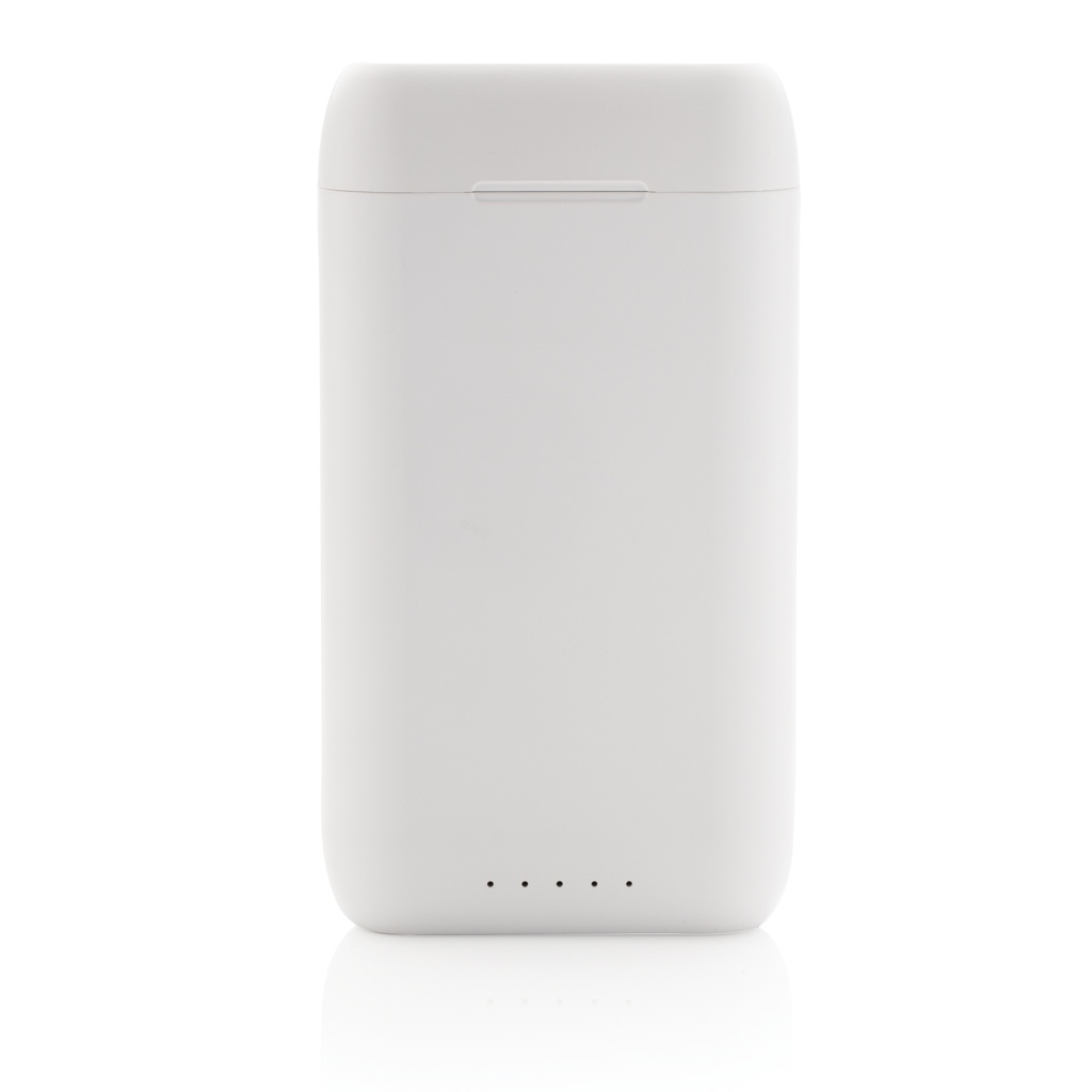 Logotrade presentreklam bild: Liberty TWS öronsnäckor med 5.000 mAh powerbank