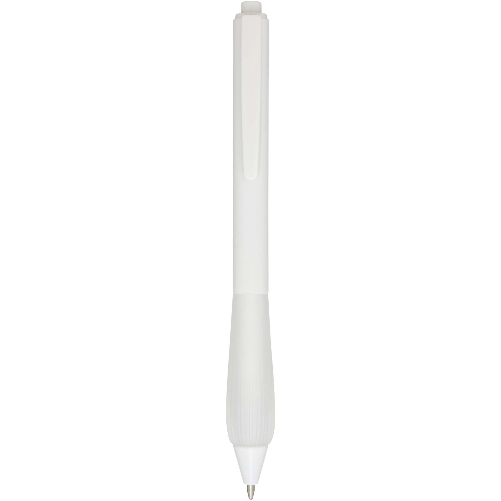 Kulspetspenna av återvunnen plast med gummerad pennkropp och grepp av TPR. Bläckfärg: Blå. Skrivlängd: 1000 meter. NIB-storlek: 1,0 mm.