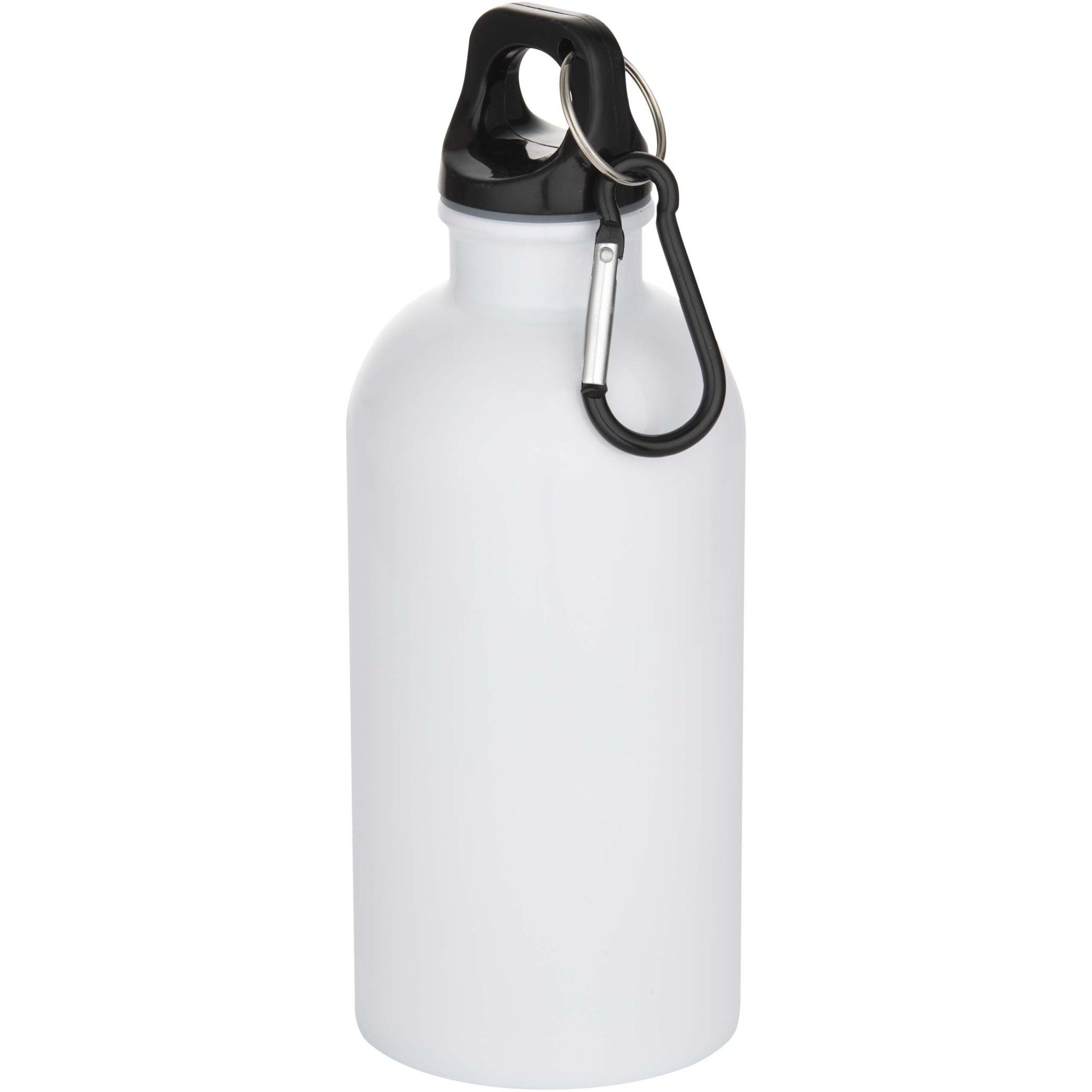 Håll alltid vätskebalansen uppe med denna hållbara men lätta vattenflaska på 400 ml tillverkad av RCS-certifierat återvunnet rostfritt stål, med en speciell beläggning för sublimering. Den är den perfekta följeslagaren för sport, dagsutflykter eller för kontoret. Flaskan Oregon med enkelvägg har ett vridbart lock och gott om plats för att lägga till logotyper. Fäst den bifogade karbinhaken (inte lämplig för klättring) säkert på en väska för att undvika att tappa bort den.