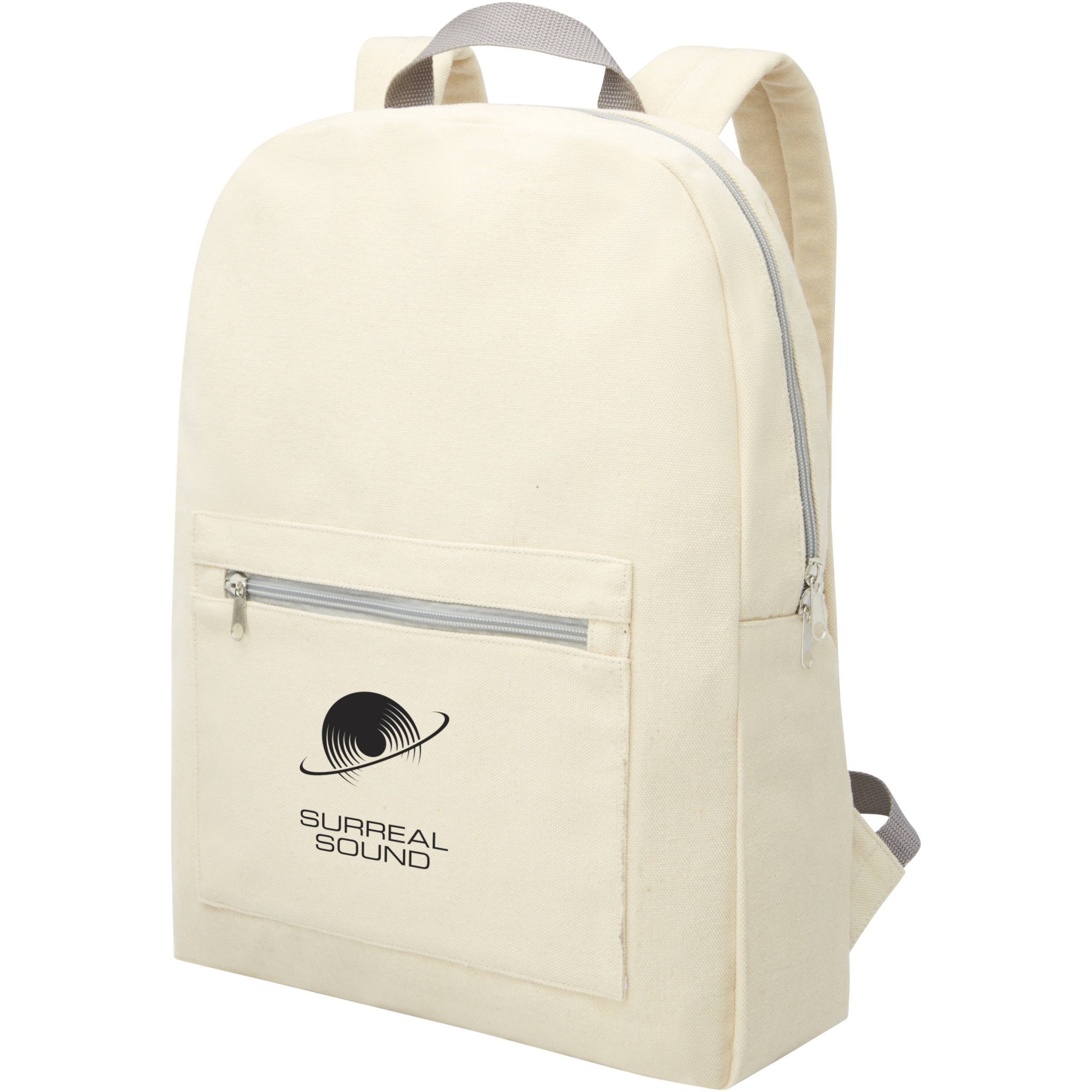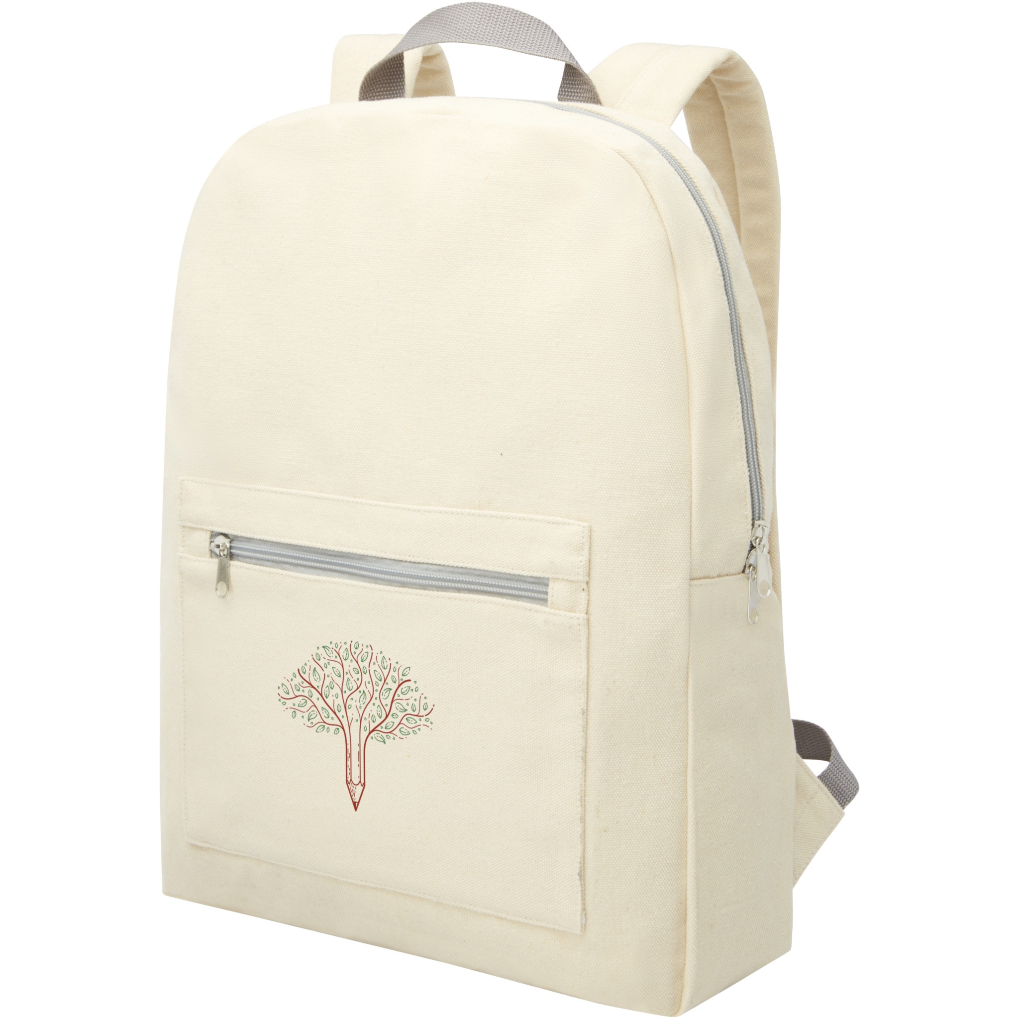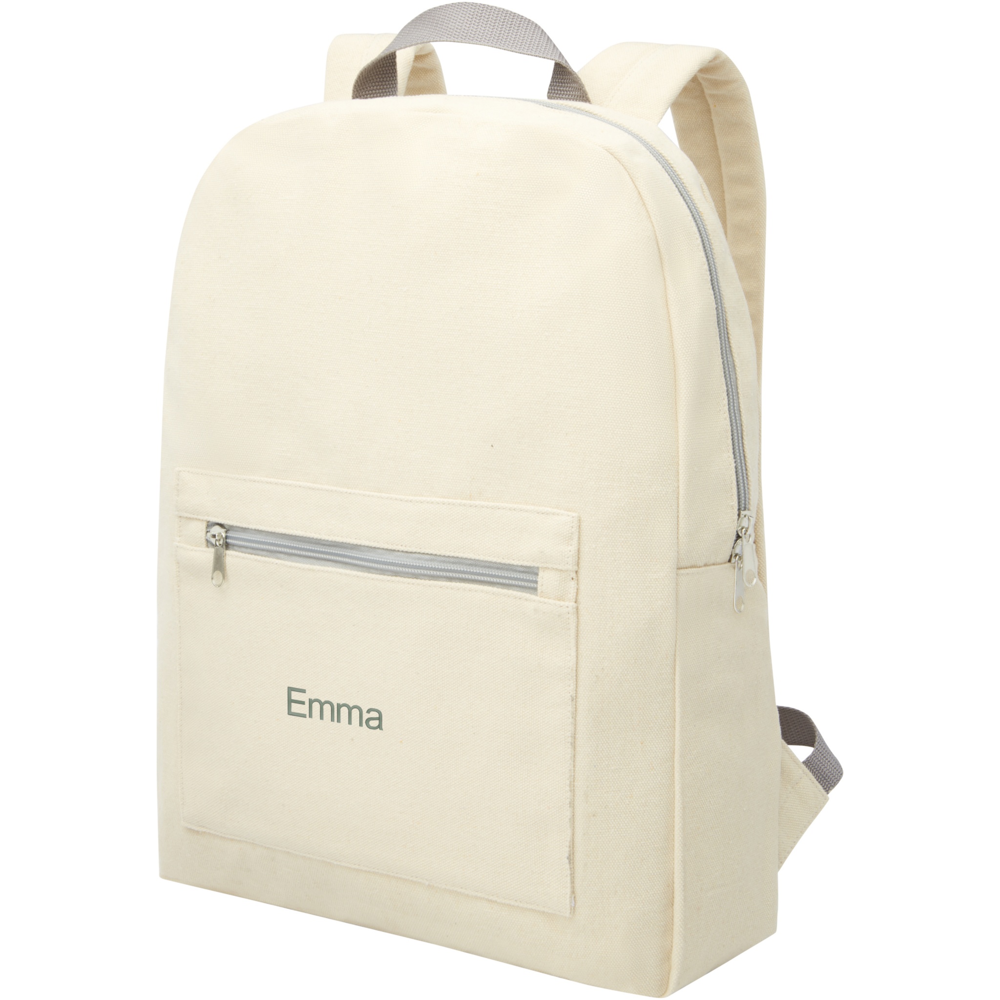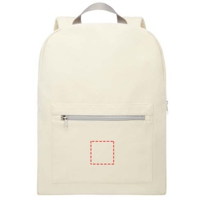 Ryggsäck i återvunnen bomulls- och polyesterblandning med dragkedjeficka framtill och vadderade axelremmar. Återvunnen bomull är tillverkad av konsumentavfall som genereras av textilfabriker under skärprocessen. Liknande färger blandas ihop, vilket innebär att ingen ytterligare färgning krävs. Det kan finnas mindre variationer i färgen på den faktiska produkten på grund av produktionsprocessens art. Denna funktion ger tydligt ett mer autentiskt utseende.