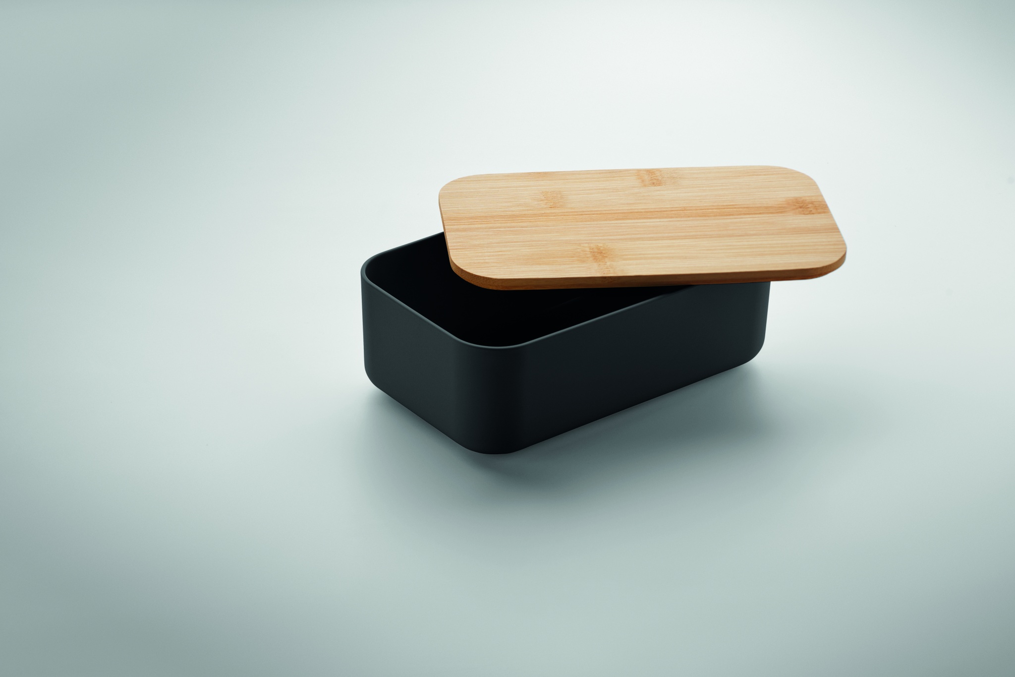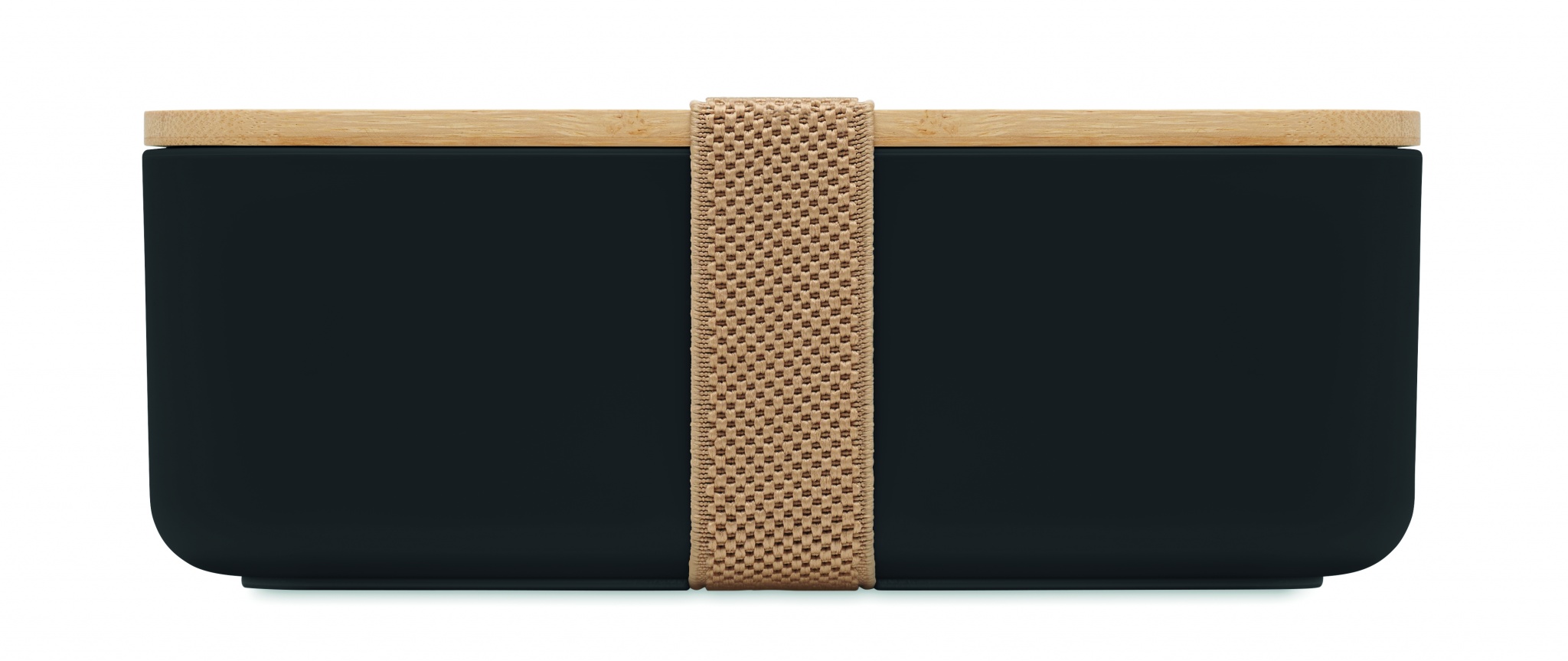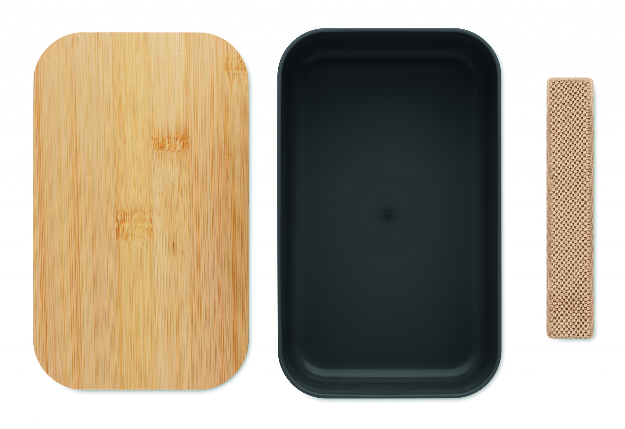 Matlåda av PLA-majs med lock av bambu och med elastiskt band. Volym: 1000 ml.