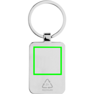 Rektangulär nyckelring tillverkad av RCS-återvunnen zinklegering och bambu. Totalt återvunnet innehåll: 76 % baserat på total produktvikt. RCS-certifiering garanterar en helt certifierad leveranskedja för de återvunna materialen. Levereras i en papperspåse.