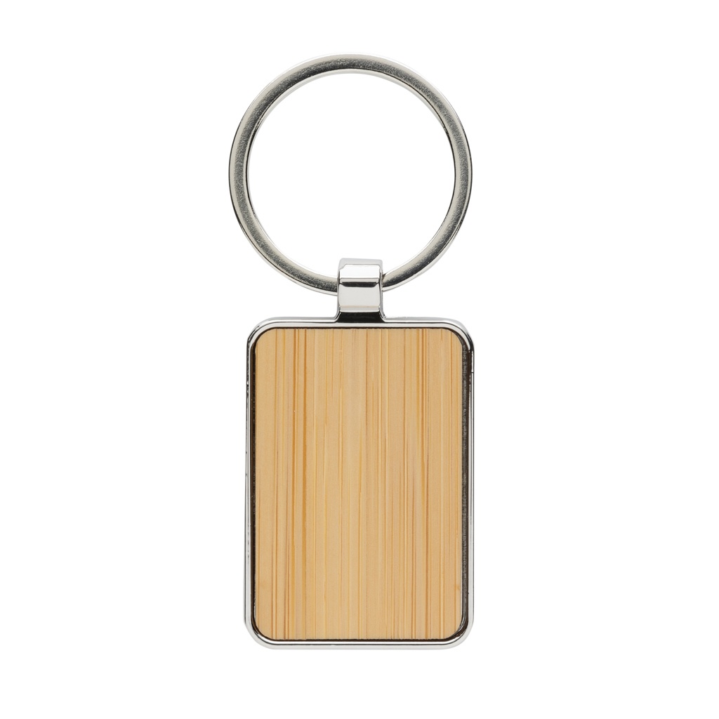 Logotrade presentreklam bild: Rektangulär nyckelring i bambu & RCS återvunnen zinklegering
