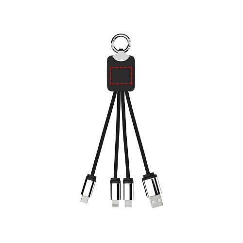 Laddningskabel i gummi med metallfinish och belyst logotyp. 3 st anslutningar (typ C, Android, iPhone). Upp till tre enheter kan laddas samtidigt. Längd på kablar (inkl. kontakter): 10 cm. RPET-plastkabel och förpackningen är tillverkad av återvunnet papper och återvunnen plast.