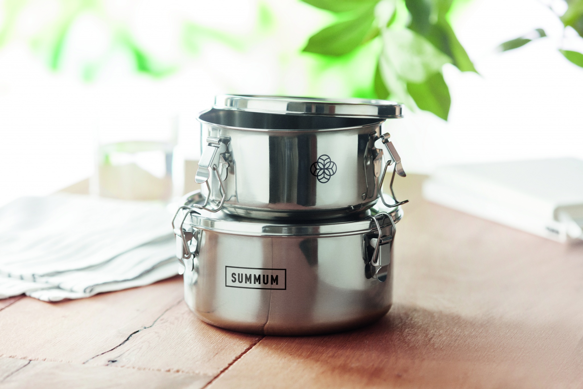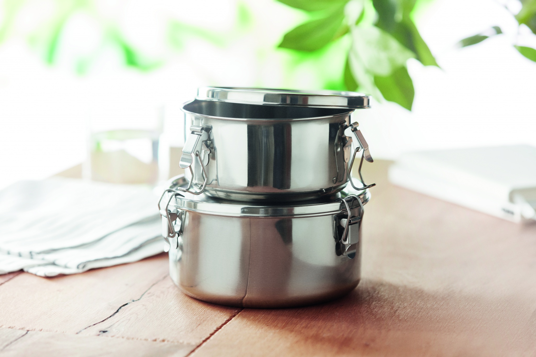 Lunchlådor eller förvaringsset i rostfritt stål med starka och säkra sidospännen. Volym: 450 ml och 900 ml. Endast lasergravyr ger diskamskin säker märkning.