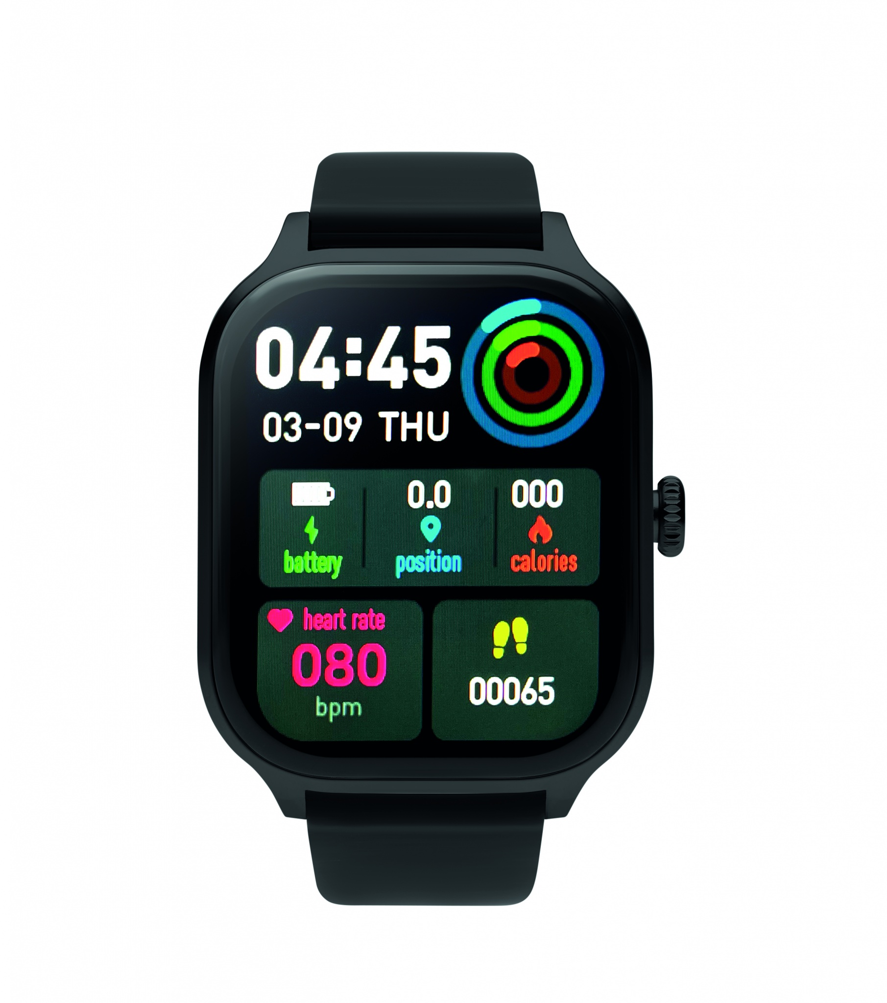 4.0 trådlös smart hälsoklocka i zinklegering med silikonarmband. 2,01 tums LCD-display med touchfunktion. Uppladdningsbart Li-Pol 180 mAh batteri. Kräver en gratis app (HryFine finns för både iOS och Android).