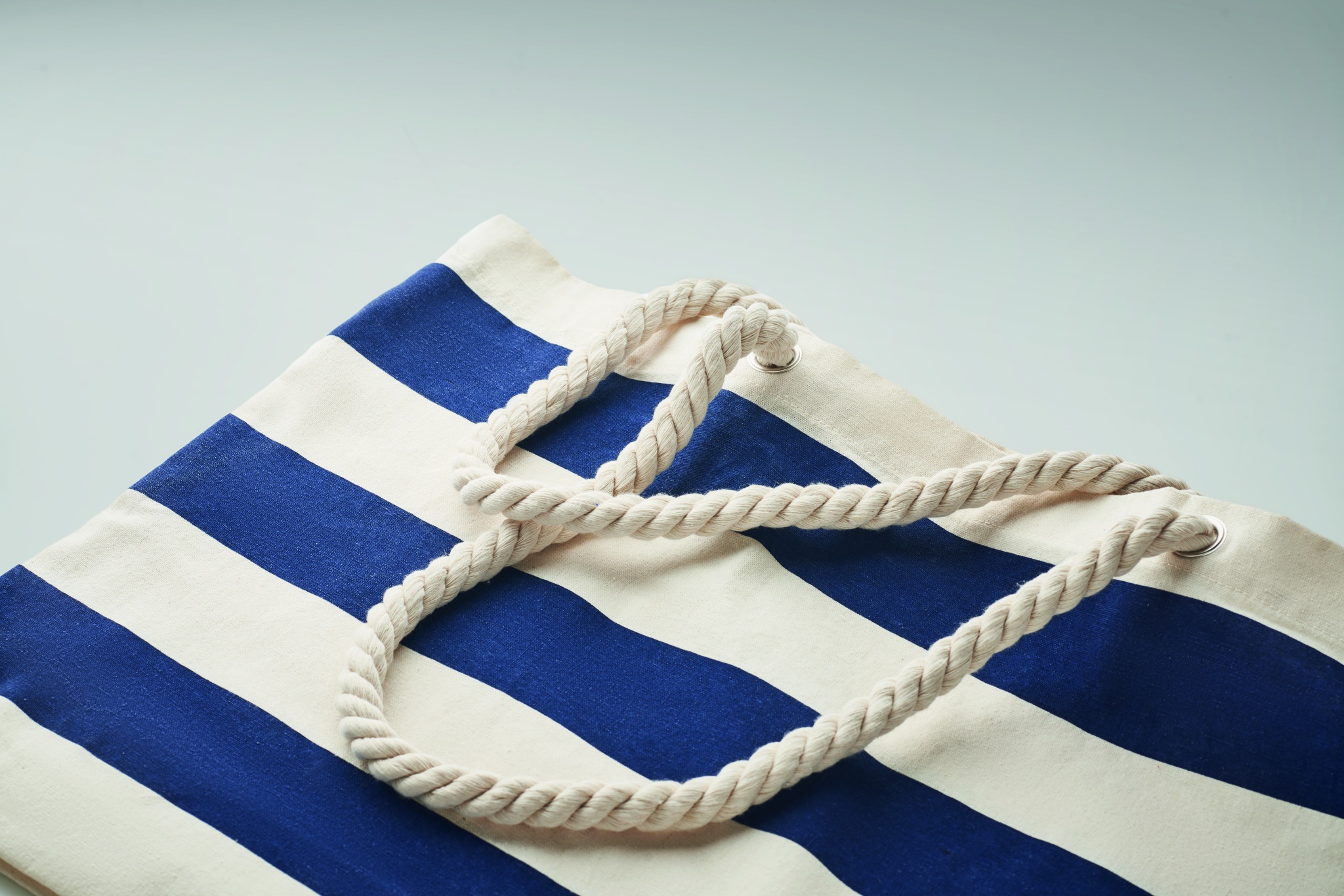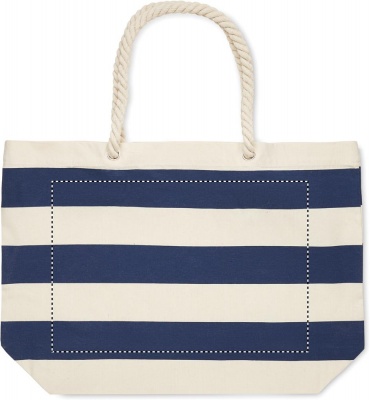Randig strand- eller shoppingväska i bomull med snörhandtag. 220 gr/m².