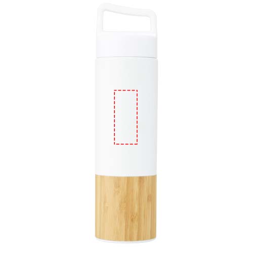 Vakuumisolerad 18/8 kopparflaska i rostfritt stål som håller dryckerna varma eller kalla i flera timmar. Har en trendig bambudetalj och med handtaget ovanpå locket är den lätt att bära med sig. Flaskan har en bred öppning som gör den enkel att fylla och rengöra. Testad och godkänd enligt tysk lagstiftning om livsmedelssäkerhet (LFGB) och testad för ftalatinnehåll enligt REACH-förordningarna. Kapaciteten är 540 ml. Levereras i en återvunnen presentförpackning av kartong.
